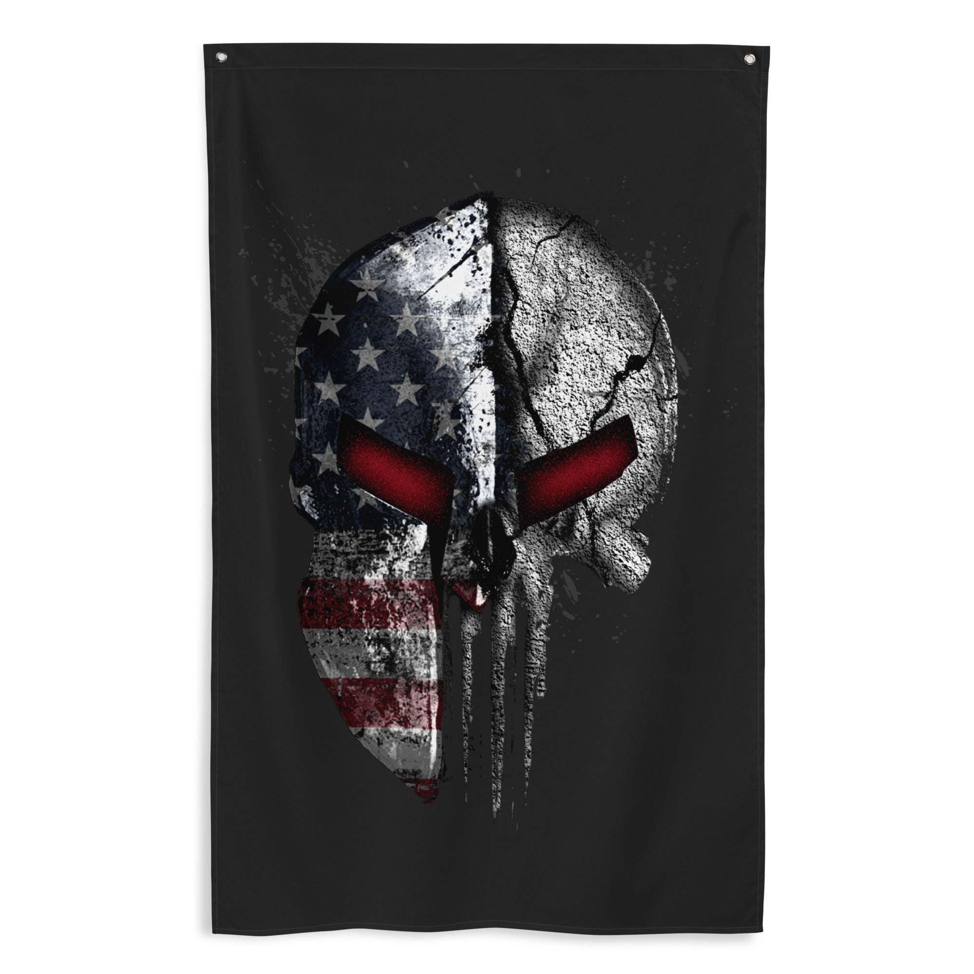 1home decor, 1skullspartan-103, 1wall art, 1wallflag, american-flag-skull-spartan-wall-flag